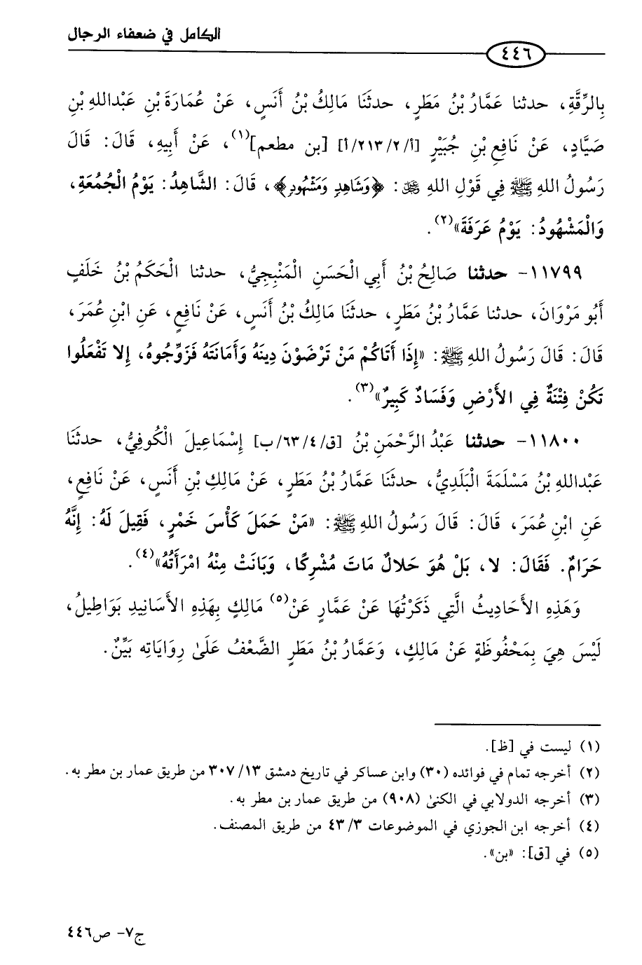 كتاب الكامل في ضعفاء الرجال لابن عدي - الرشد (اسم الجزء: 7)