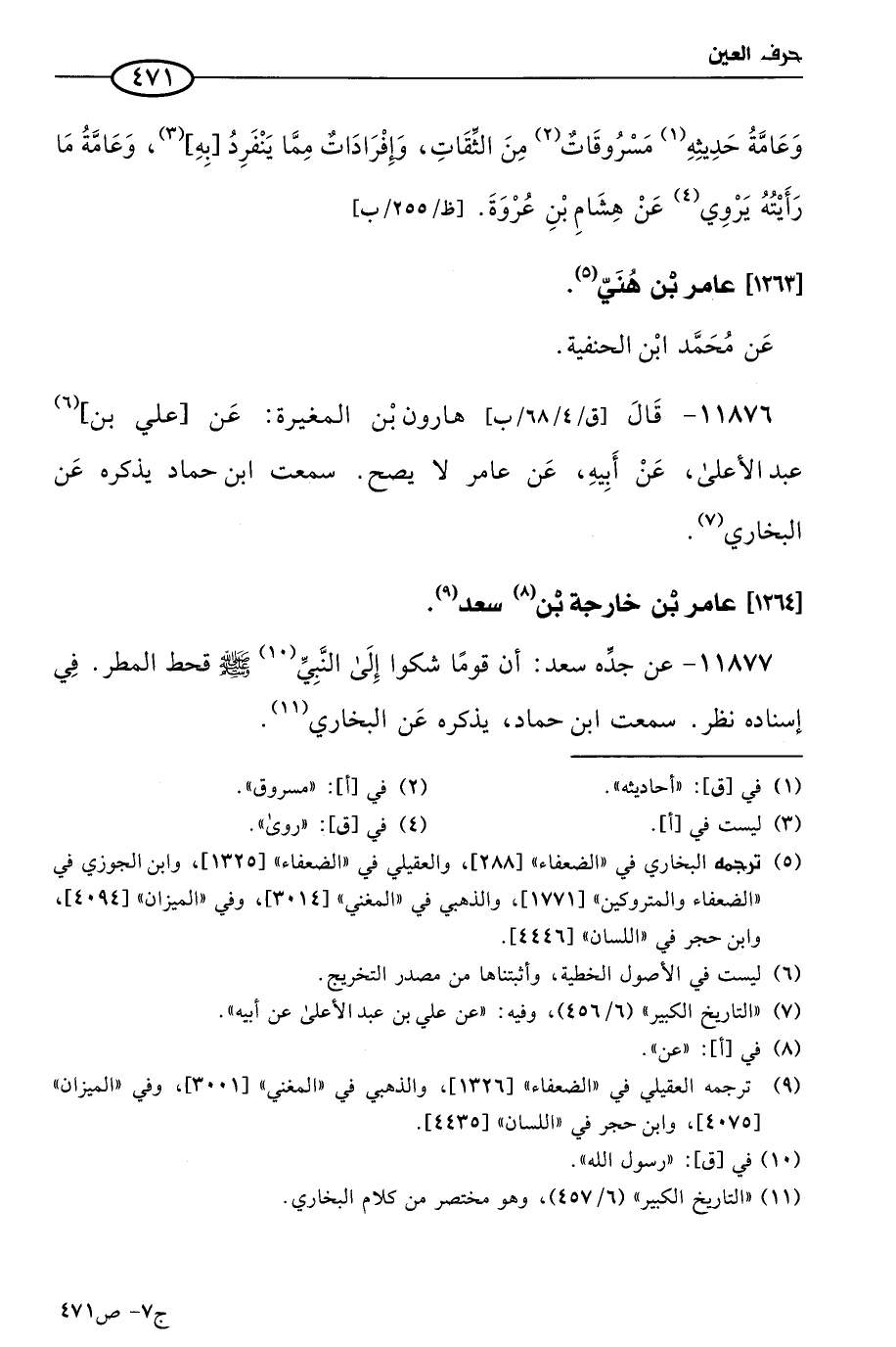 11876 - قال هارون بن المغيرة: عن علي بن عَبد الأعلى، عن أبيه، عن عامر، لا يصح. سمعتُ ابن حماد يذكره، عن البُخاري.