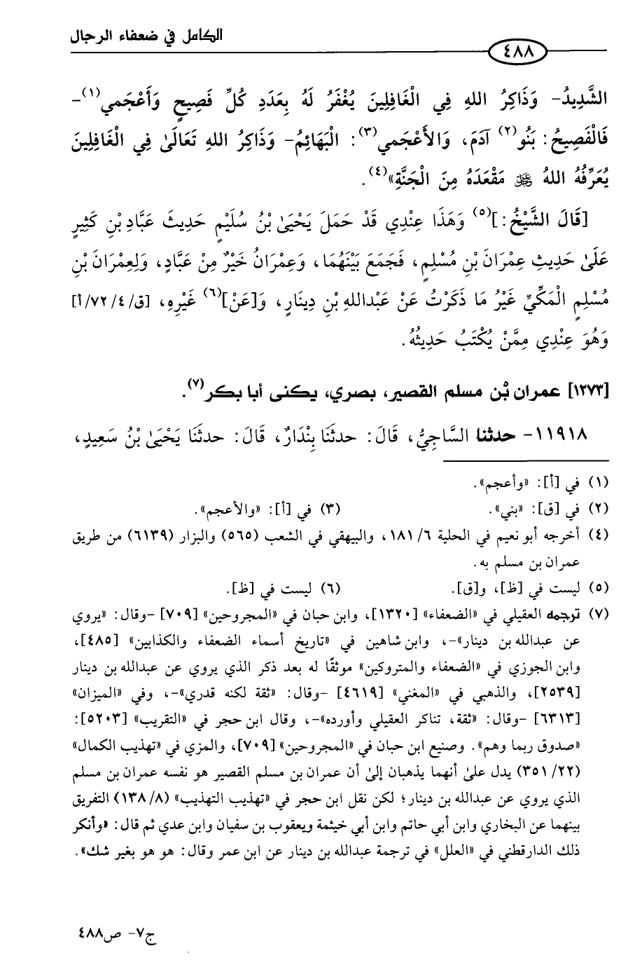 كتاب الكامل في ضعفاء الرجال لابن عدي - الرشد (اسم الجزء: 7)