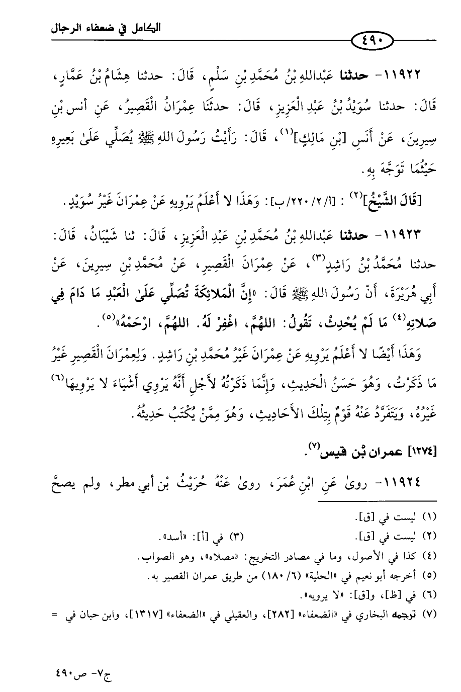 كتاب الكامل في ضعفاء الرجال لابن عدي - الرشد (اسم الجزء: 7)