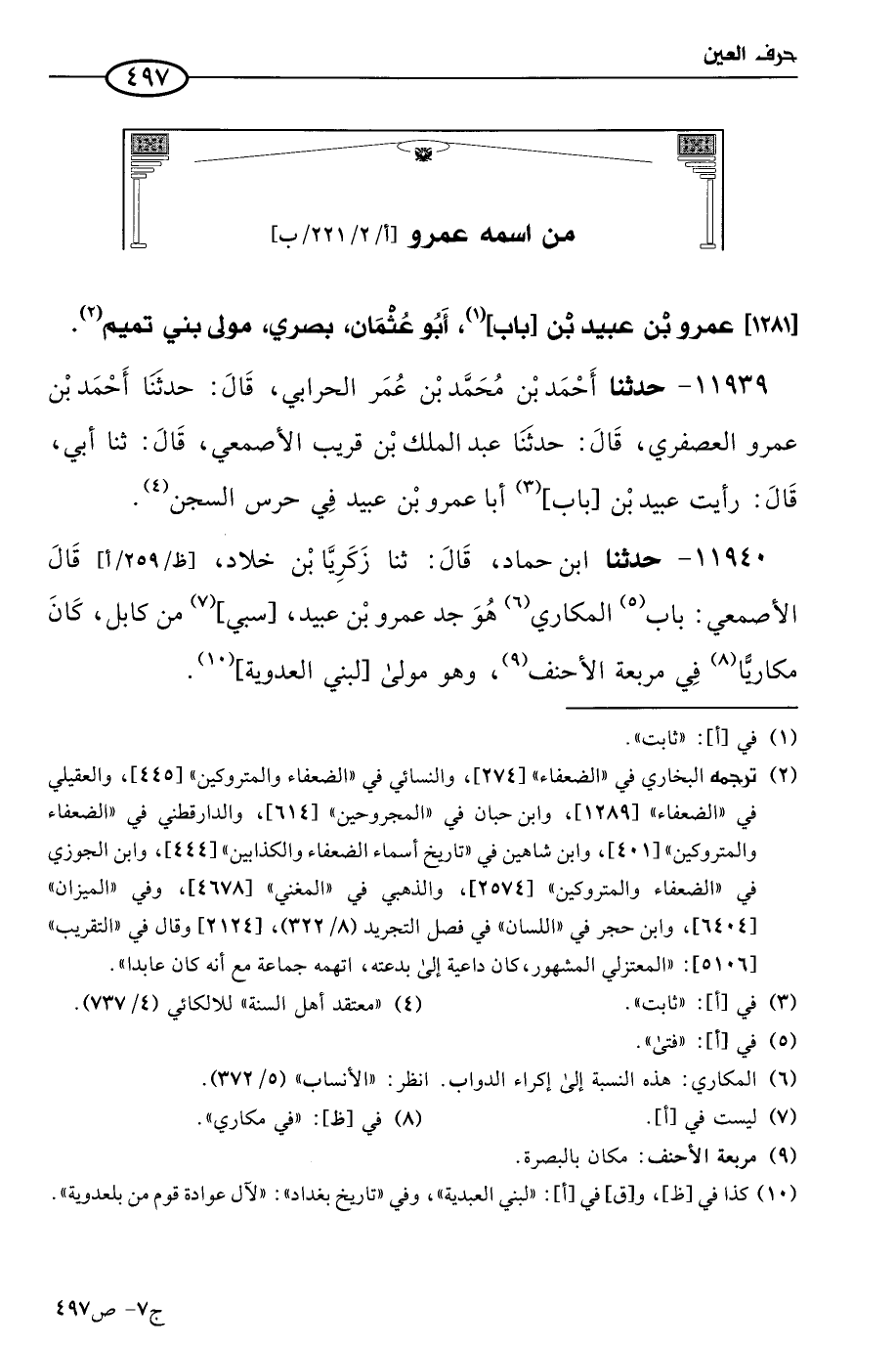 [1281] عَمرو بن عُبيد بن باب، أَبو عثمان، بصري، مولى بني تميم.