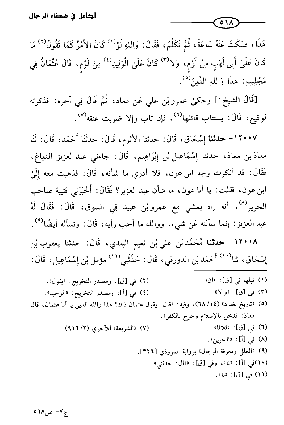 كتاب الكامل في ضعفاء الرجال لابن عدي - الرشد (اسم الجزء: 7)