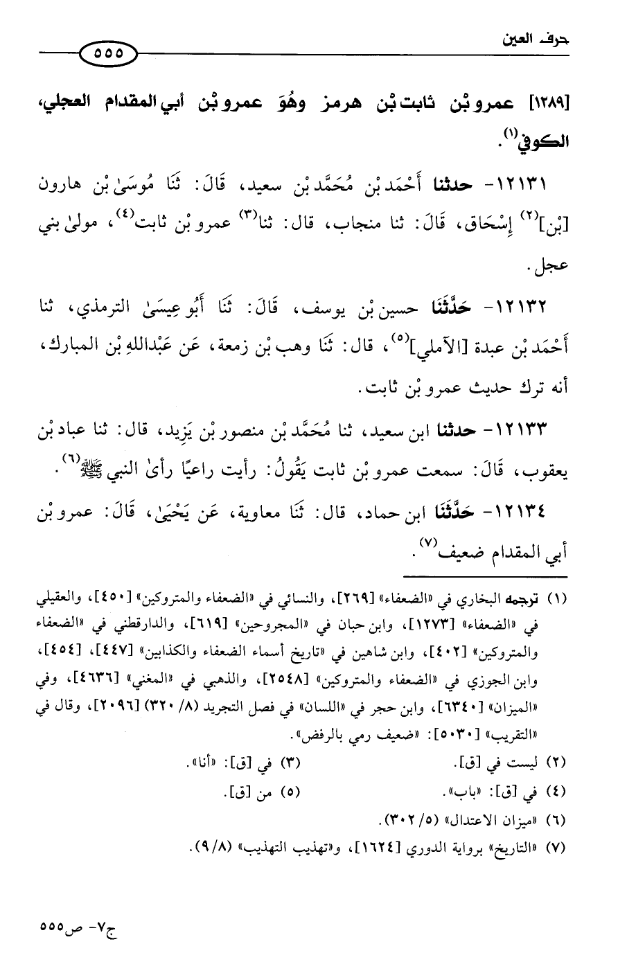 12131 - حَدثنا أحمد بن مُحمد بن سعيد، قال: حَدثنا موسى بن هارون بن إسحاق، قال: حَدثنا منجاب، حَدثنا عَمرو بن ثابت مولى بني عجل.