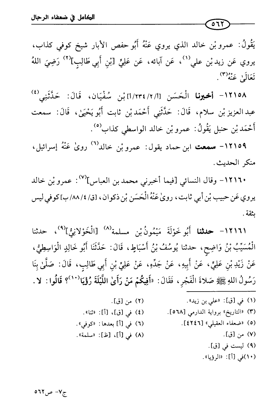 12159 - سمعتُ ابن حماد يقول: عَمرو بن خالد، روى عنه إسرائيل منكر الحديث.
