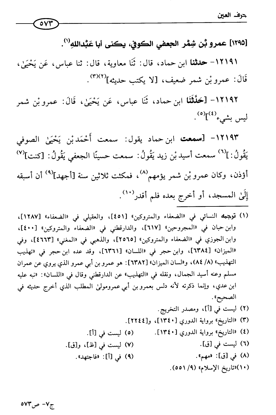 12192 - حَدثنا ابن حماد، حَدثنا عباس، عن يَحيى، قال: عَمرو بن شمر ليس بشَيءٍ.