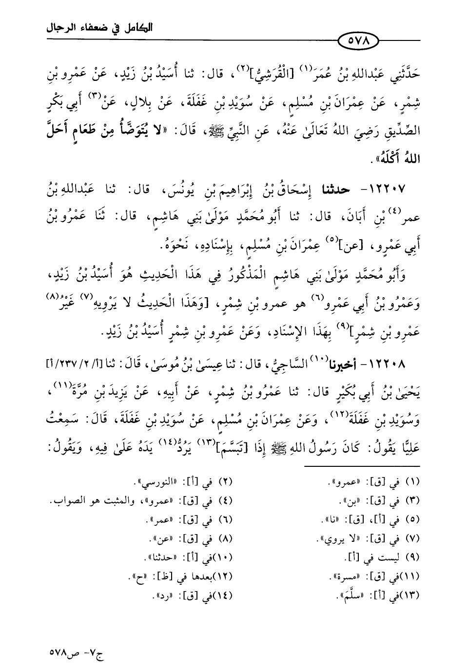 12207 - حَدثنا إسحاق بن إبراهيم بن يُونُس، قال: حَدثنا عَبد الله بن عَمرو بن أَبَان، قال: حَدثنا أَبو مُحمد مولى بني هاشم، قال: حَدثنا عَمرو بن أبي عَمرو، عن عمران بن مسلم، بإسنادِه، نَحوه.