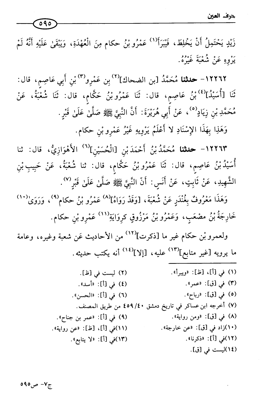 12263 - حَدثنا مُحمد بن أحمد بن الحسين الأهوازي، قال: حَدثنا أسيد بن عاصم، قال: حَدثنا عَمرو بن حكام، قال: حَدثنا شُعبَة، عن حبيب بن الشهيد، عن ثابت، عن أَنَس؛ أن النبي صَلى الله عَليه وسلم صلى على قبر.