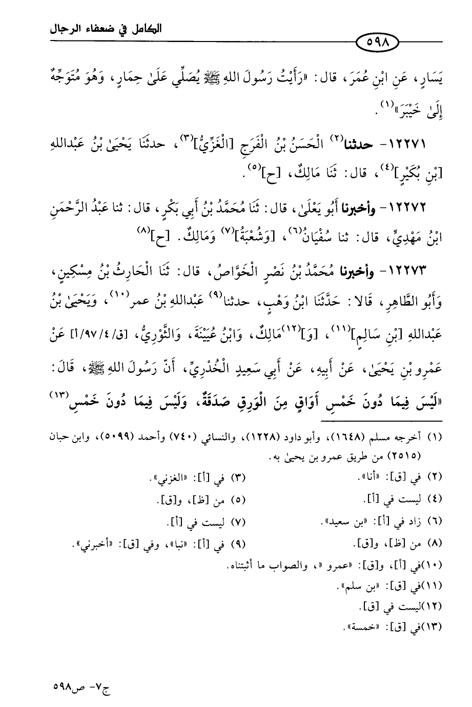 12271 - حدثنا الحسن بن الفرج الغزي، حَدثنا يَحيى بن عَبد الله بن بكير، قال: حَدثنا مالك (ح)