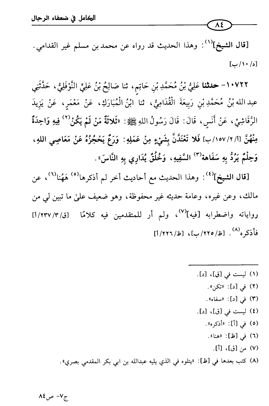 كتاب الكامل في ضعفاء الرجال لابن عدي - الرشد (اسم الجزء: 7)