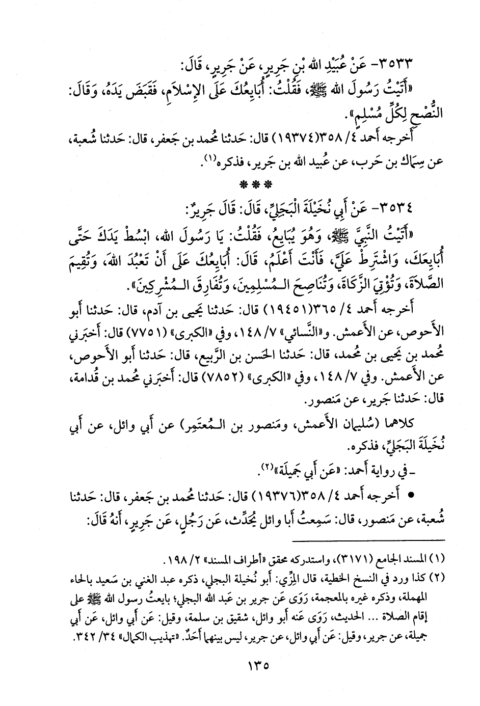 ٣٥٣٣ - عن عُبيد الله بن جرير، عن جرير، قال: