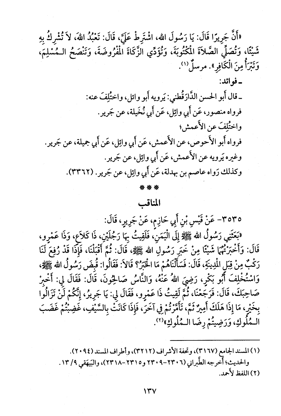 ٣٥٣٥ - عن قيس بن أبي حازم، عن جرير، قال: