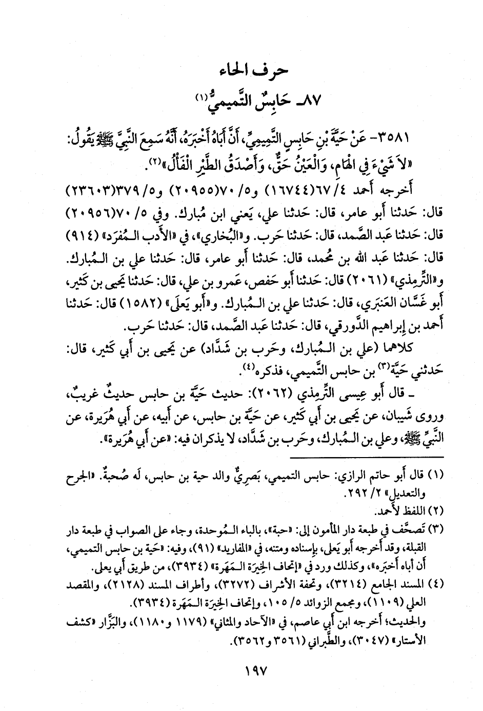 (¬١) تصحف في طبعة دار المأمون إلى: «حبة»، بالباء الموحدة، وجاء على الصواب في طبعة دار القبلة، وقد أخرجه أَبو يَعلى، بإسناده ومتنه في «المفاريد» (٩١)، وفيه: «حية بن حابس التميمي، أن أباه أخبره»، وكذلك ورد في «إتحاف الخِيرَة المَهَرة» (٣٩٣٤)، من طريق أبي يَعلى.