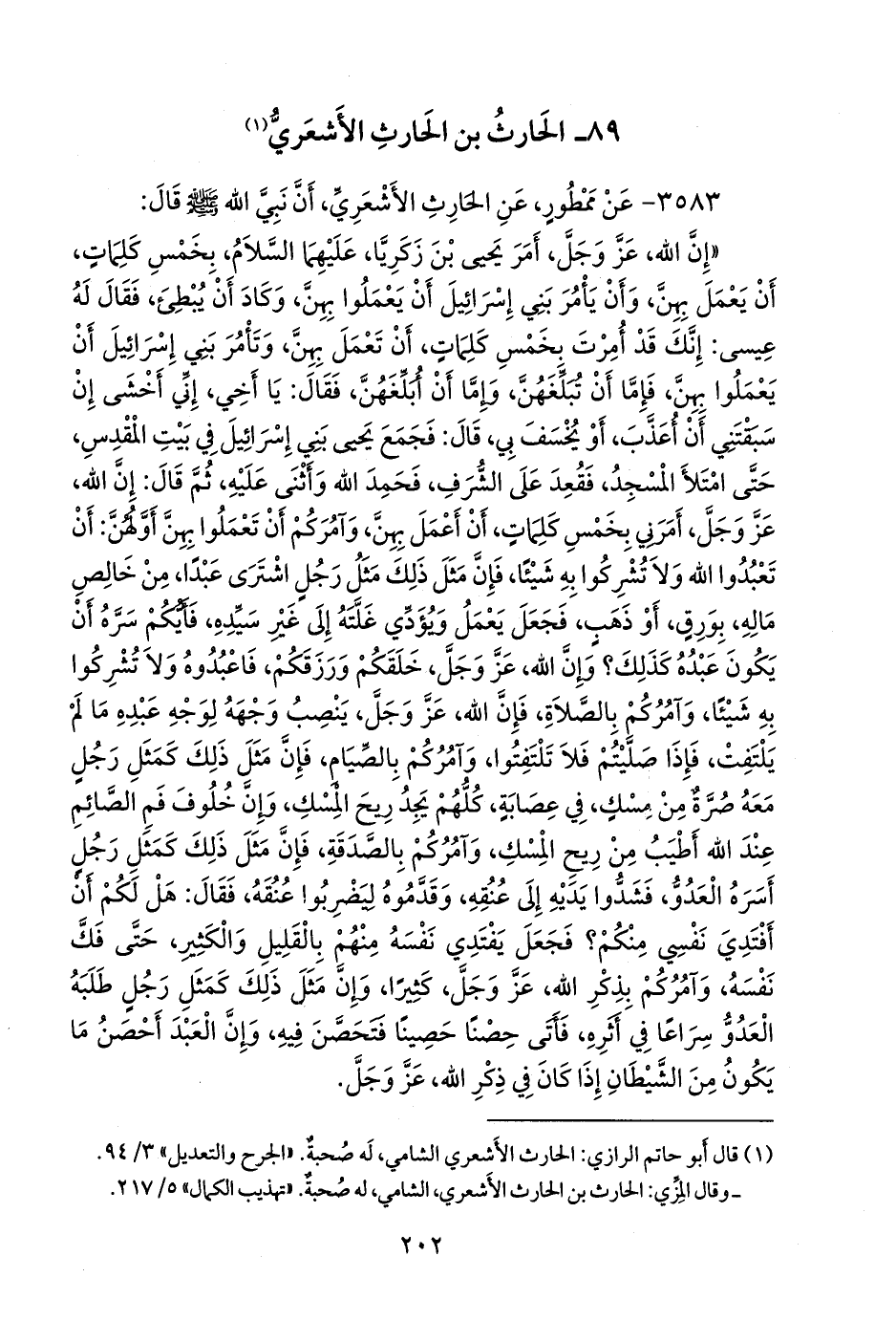 (¬١) قال أَبو حاتم الرازي: الحارث الأشعري الشامي، له صحبة. «الجرح والتعديل» ٣/ ٩٤.