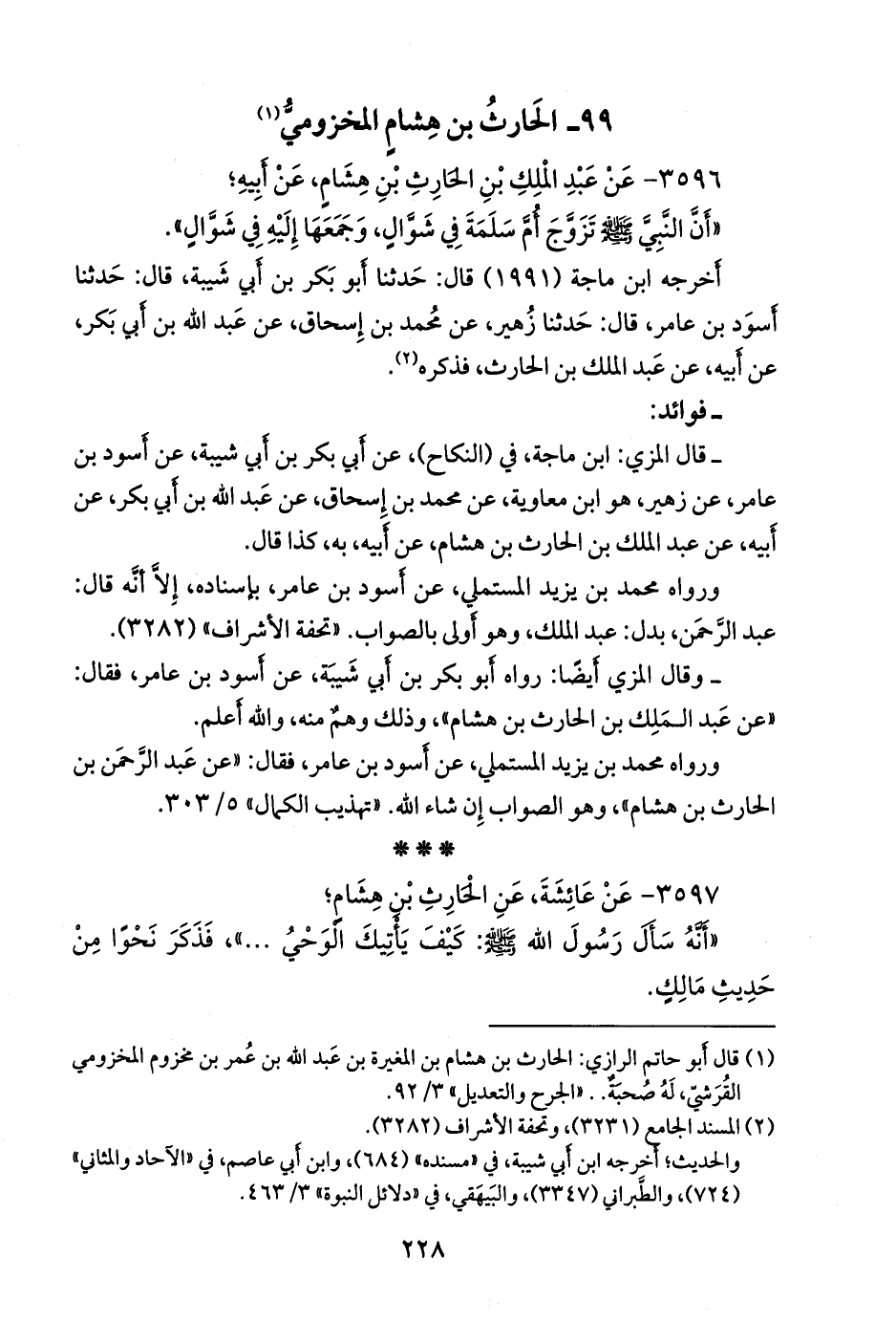 ٣٥٩٦ - عن عبد الملك بن الحارث بن هشام، عن أبيه؛