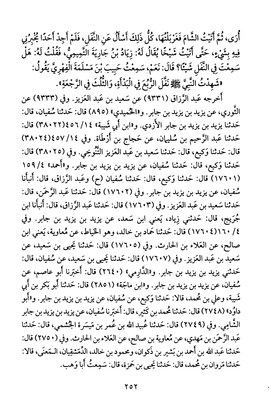 وفي (٢٧٤٩) قال: حدثنا عُبيد الله بن عمر بن ميسرة الجشمي، قال: حدثنا عبد الرَّحمَن بن مهدي، عن معاوية بن صالح، عن العلاء بن الحارث. وفي (٢٧٥٠) قال: حدثنا عبد الله بن أحمد بن بشير بن ذكوان، ومحمود بن خالد، الدمشقيان، المَعنَى، قالا: حدثنا مروان بن محمد، قال: حدثنا يحيى بن حمزة، قال: سمعت أبا وهب.