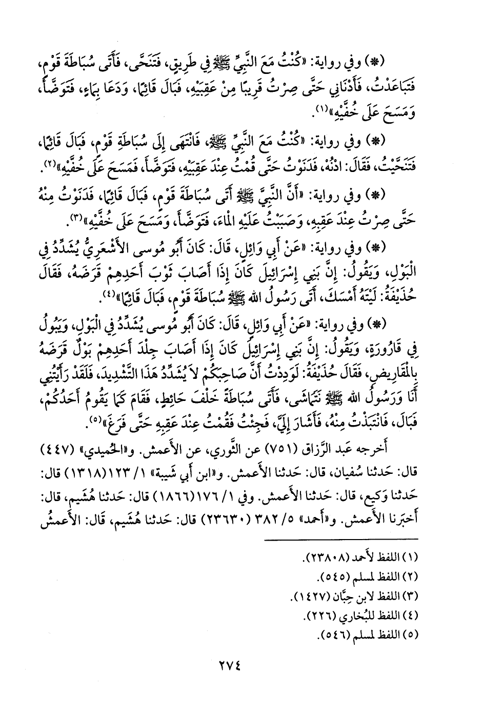 أخرجه عبد الرزاق (٧٥١) عن الثوري، عن الأعمش. و «الحميدي» (٤٤٧) قال: حدثنا سفيان، قال: حدثنا الأعمش. و «ابن أبي شيبة» (١٣١٨) قال: حدثنا وكيع، قال: حدثنا الأعمش. وفي ١/ ١٧٦ (١٨٦٦) قال: حدثنا هُشيم، قال: أخبرنا الأعمش. و «أحمد» ٥/ ٣٨٢ (٢٣٦٣٠) قال: حدثنا هُشيم، قال: الأعمش