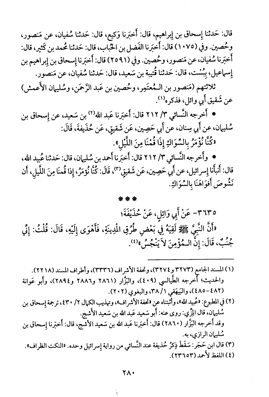 (¬٣) قال ابن حجر: سقط ذكر حذيفة عند النَّسَائي من رواية إسرائيل وحده. «النكت الظراف».