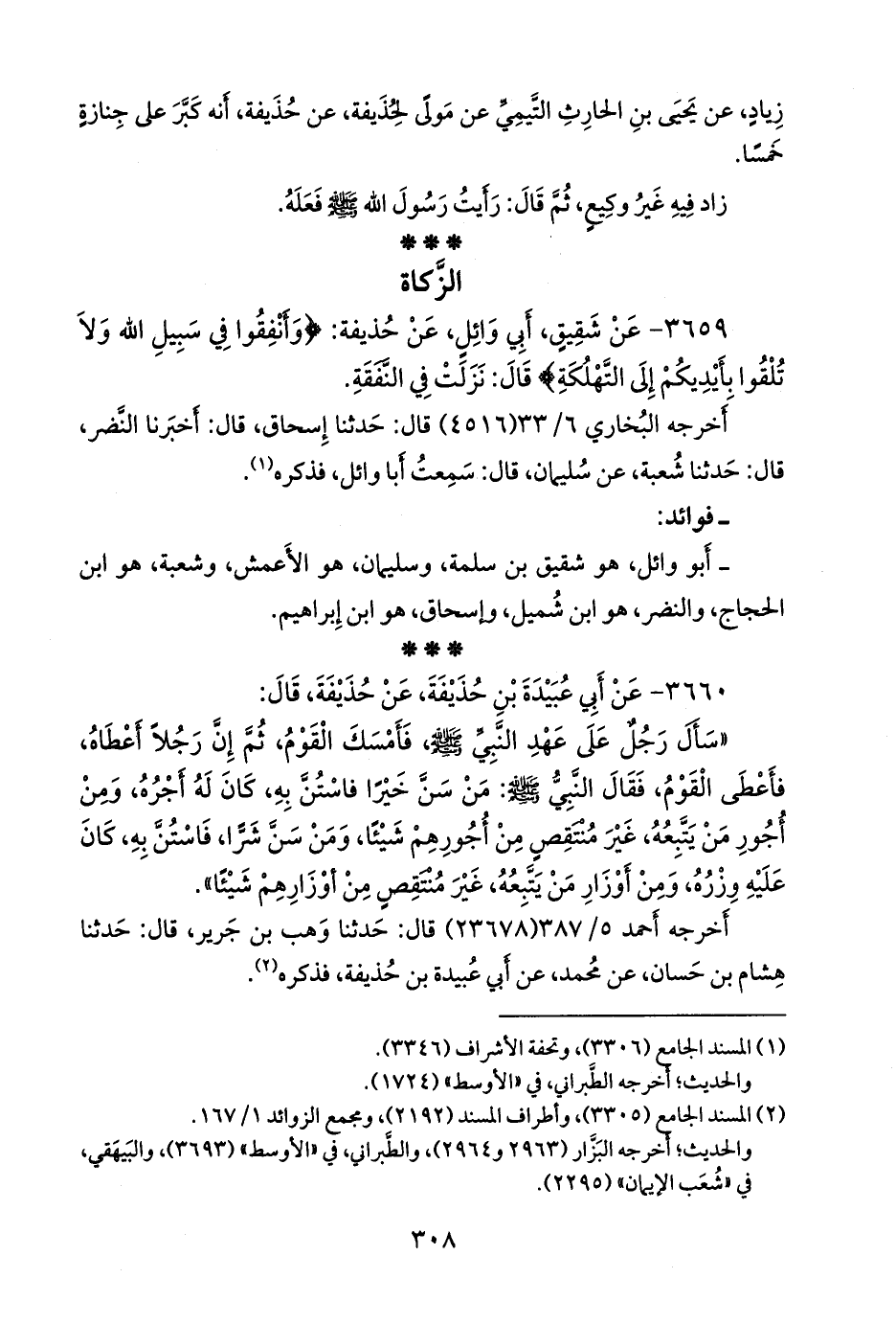 ٣٦٥٩ - عن شقيق أبي وائل، عن حذيفة: {وأنفقوا في سبيل الله ولا تلقوا بأيديكم إلى التهلكة} قال: نزلت في النفقة.