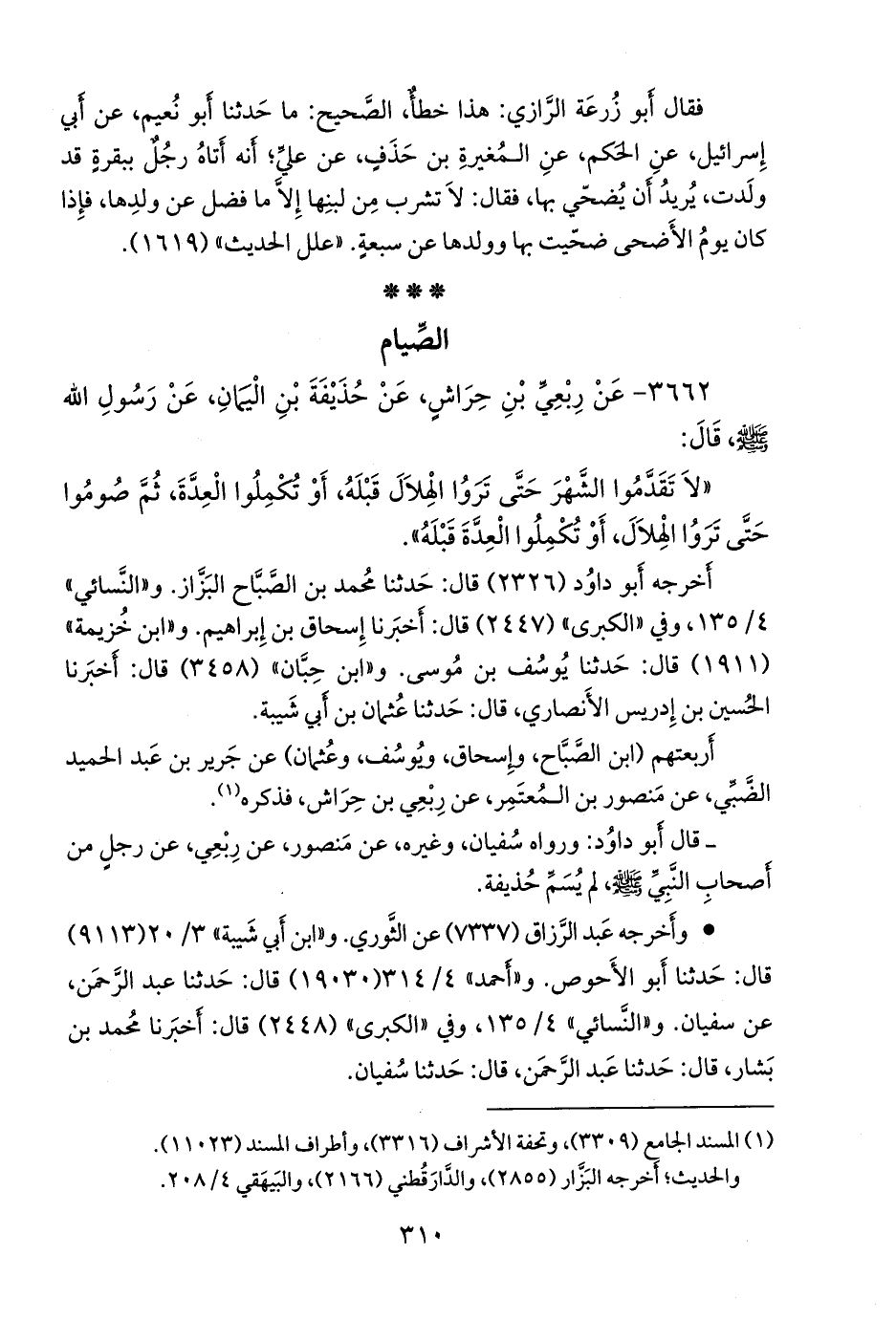 أربعتهم (ابن الصباح، وإسحاق، ويوسف، وعثمان) عن جَرير بن عبد الحميد الضبي، عن منصور بن المُعتَمِر، عن رِبعي بن حِراش، فذكره (¬٢).