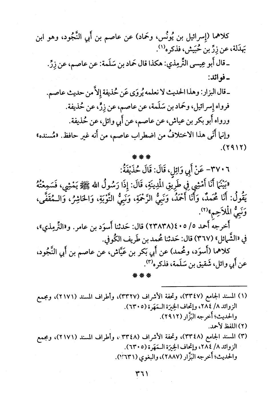 (¬٢) المسند الجامع (٣٣٤٨)، وتحفة الأشراف (٣٣٤٨)، وأطراف المسند (٢١٧١)، ومَجمَع الزوائد ٨/ ٢٨٤، وإتحاف الخِيرَة المَهَرة (٦٣٠٥).