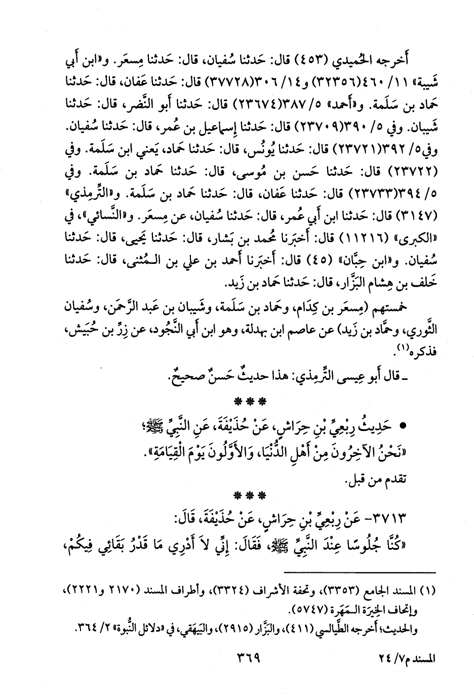 ٣٧١٣ - عن رِبعي بن حِراش، عن حذيفة، قال: