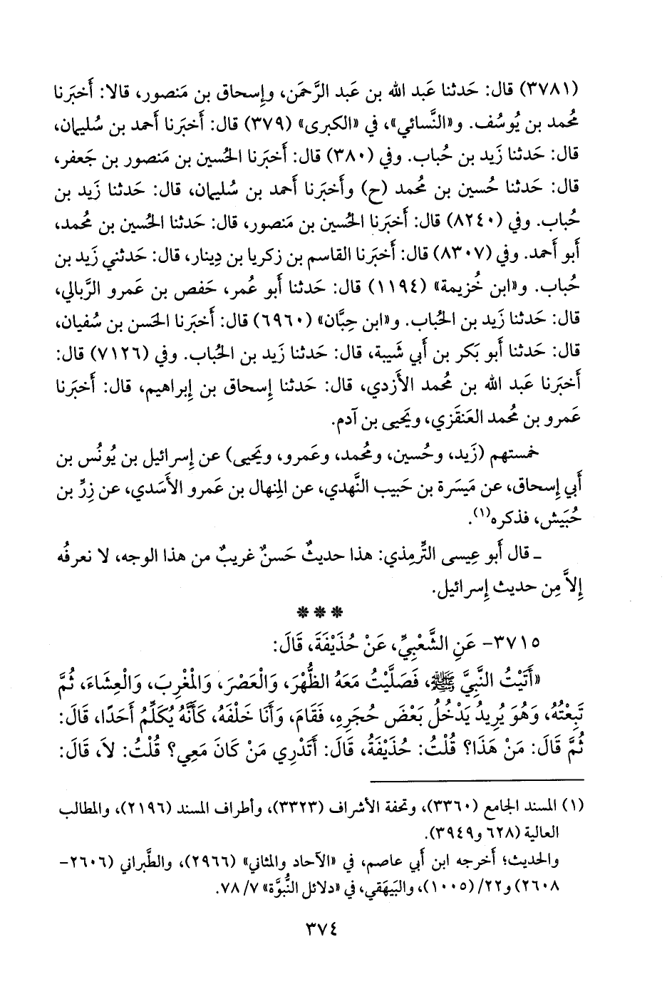 ٣٧١٥ - عن عامر بن شَراحيل الشَّعبي، عن حذيفة، قال: