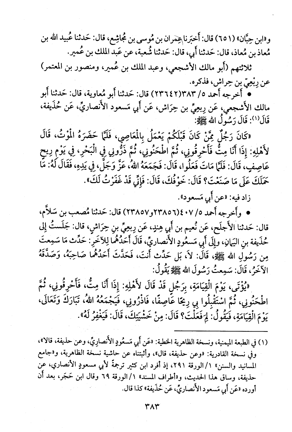 • أخرجه أحمد (٢٣٦٤٢) قال: حدثنا أَبو معاوية، قال: حدثنا أَبو مالك الأشجعي، عن رِبعي بن حِراش، عن أبي مسعود الأَنصاري، وعن (¬١) حذيفة، قالا: قال رسول الله صَلى الله عَليه وسَلم:
