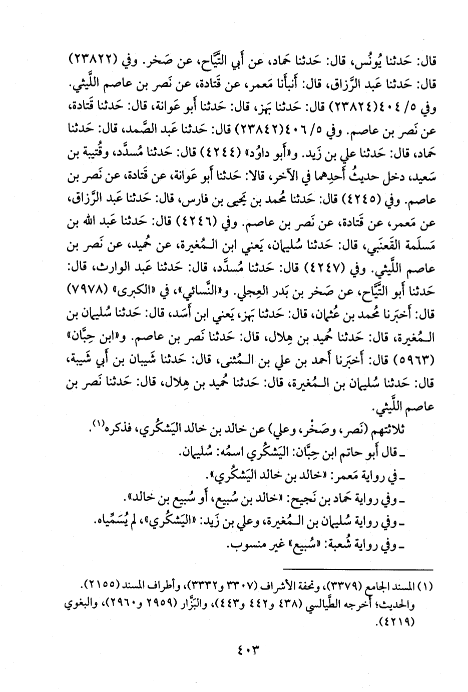 وفي (٤٢٤٧) قال: حدثنا مُسدد، قال: حدثنا عبد الوارث، قال: حدثنا أَبو التياح، عن صخر بن بدر العجلي. و «النَّسَائي» في «الكبرى» (٧٩٧٨) قال: أخبرنا محمد بن عثمان، قال: حدثنا بَهز، يعني ابن أسد، قال: حدثنا سليمان بن المغيرة، قال: حدثنا حميد بن هلال، قال: حدثنا نصر بن عاصم. و «ابن حِبَّان» (٥٩٦٣) قال: أخبرنا أحمد بن علي بن المثنى، قال: حدثنا شَيبان بن أبي شيبة، قال: حدثنا سليمان بن المغيرة، قال: حدثنا حميد بن هلال، قال: حدثنا نصر بن عاصم الليثي.