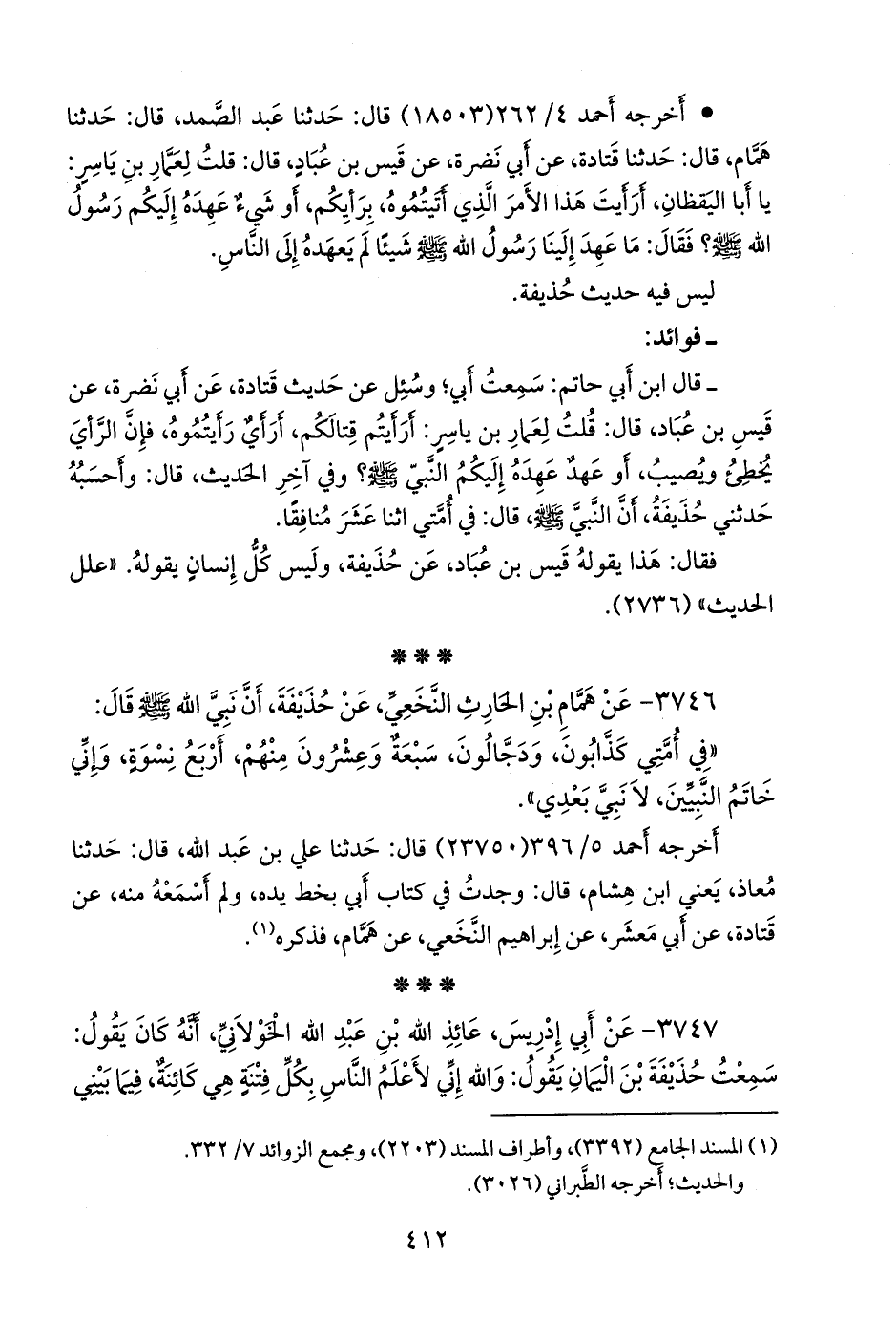 ٣٧٤٦ - عن همام بن الحارث النَّخَعي، عن حذيفة، أن نبي الله صَلى الله عَليه وسَلم قال:
