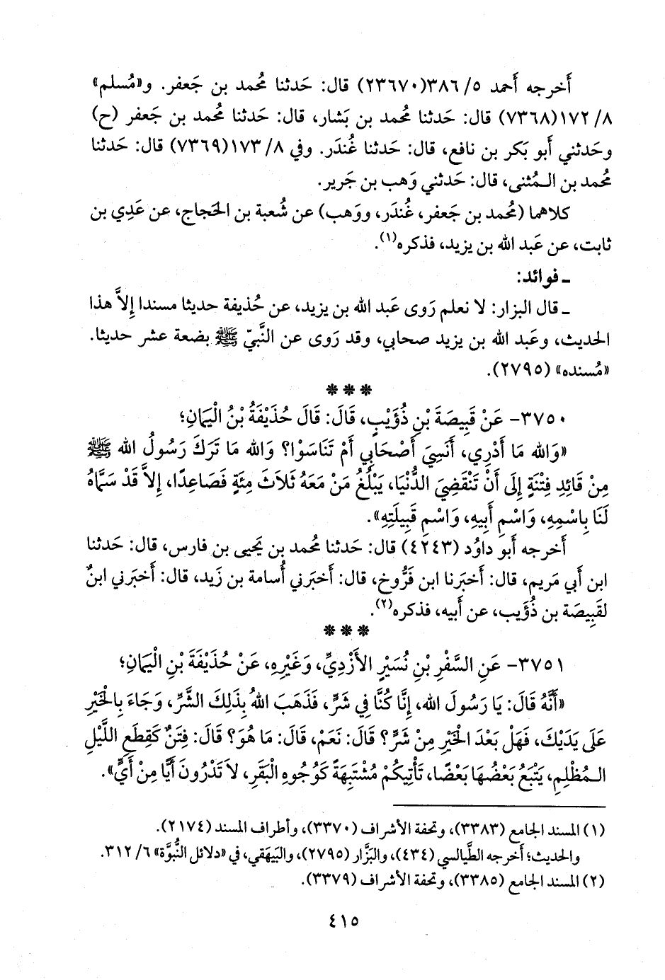٣٧٥١ - عن السفر بن نُسير الأزدي، وغيره، عن حذيفة بن اليمان؛