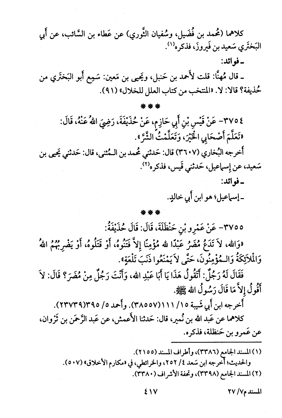٣٧٥٥ - عن عَمرو بن حنظلة، قال: قال حذيفة: