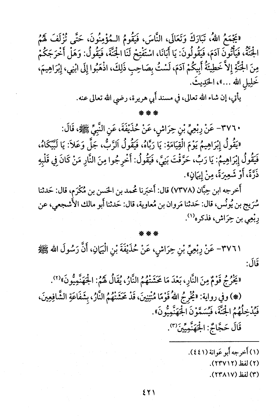 ٣٧٦١ - عن رِبعي بن حِراش، عن حذيفة بن اليمان، أن رسول الله صَلى الله عَليه وسَلم قال: