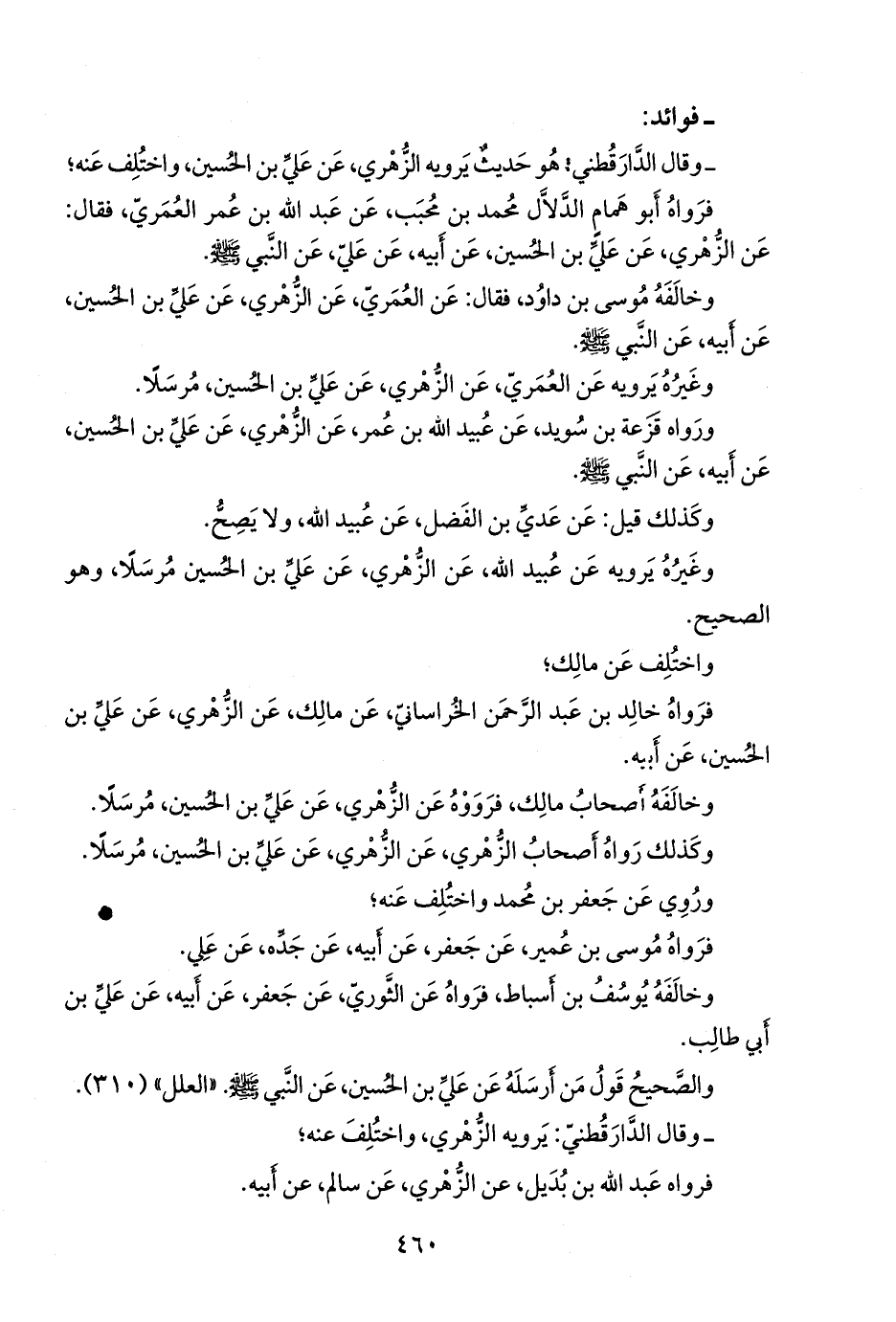 - وقال الدارقُطني: هو حديثٌ يرويه الزُّهْري، عن علي بن الحسين، واختُلِف عنه؛