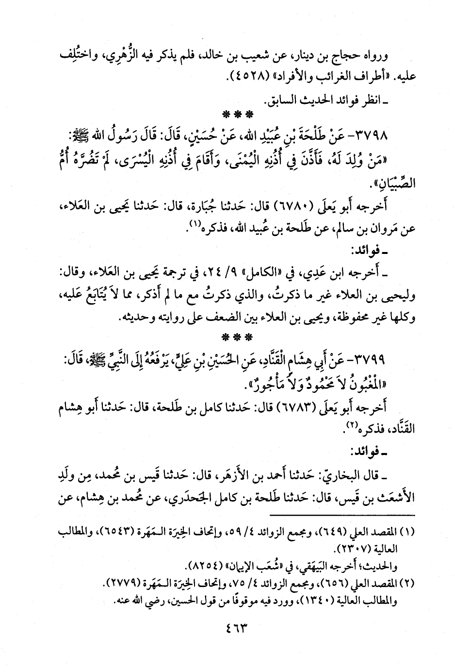 ٣٧٩٨ - عن طلحة بن عُبيد الله، عن حسين، قال: قال رسول الله صَلى الله عَليه وسَلم: