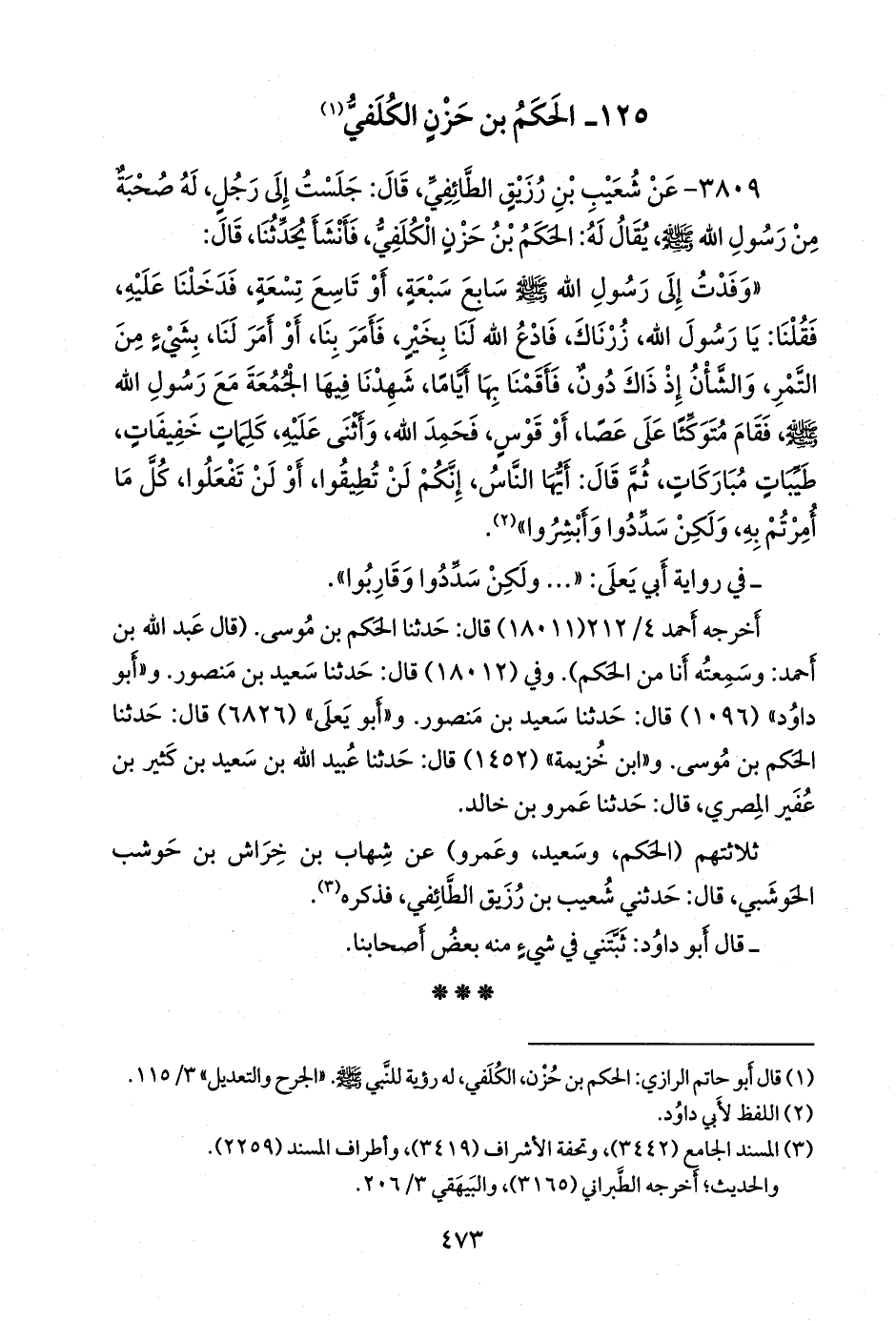 ٣٨٠٩ - عن شعيب بن رُزيق الطائفي، قال: جلست إلى رجل، له صحبة من رسول الله صَلى الله عَليه وسَلم يقال له: الحكم بن حزن الكلفي، فأنشأ يحدثنا، قال:
