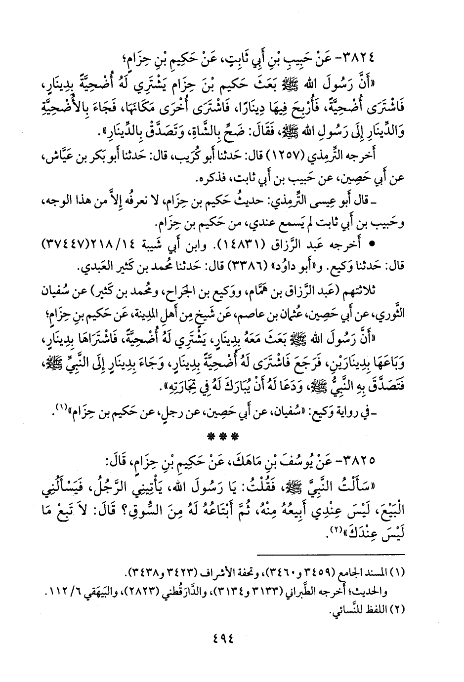 ٣٨٢٤ - عن حبيب بن أبي ثابت، عن حكيم بن حزام؛