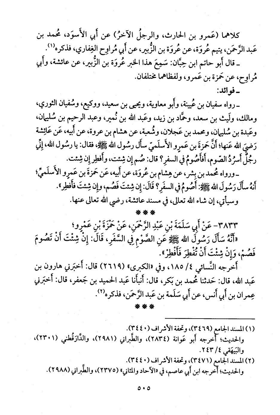 ٣٨٣٣ - عن أبي سلمة بن عبد الرَّحمَن، عن حمزة بن عَمرو؛