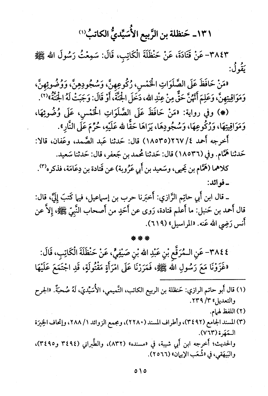 (¬١) قال أَبو حاتم الرازي: حنظلة بن الربيع الكاتب، التميمي، الأسيدي، له صحبة. «الجرح والتعديل» ٣/ ٢٣٩.