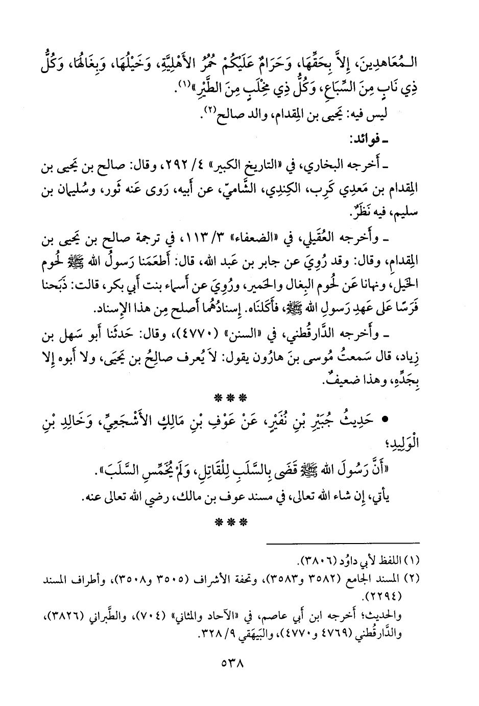 • حديث جُبير بن نُفير، عن عوف بن مالك الأشجعي، وخالد بن الوليد؛