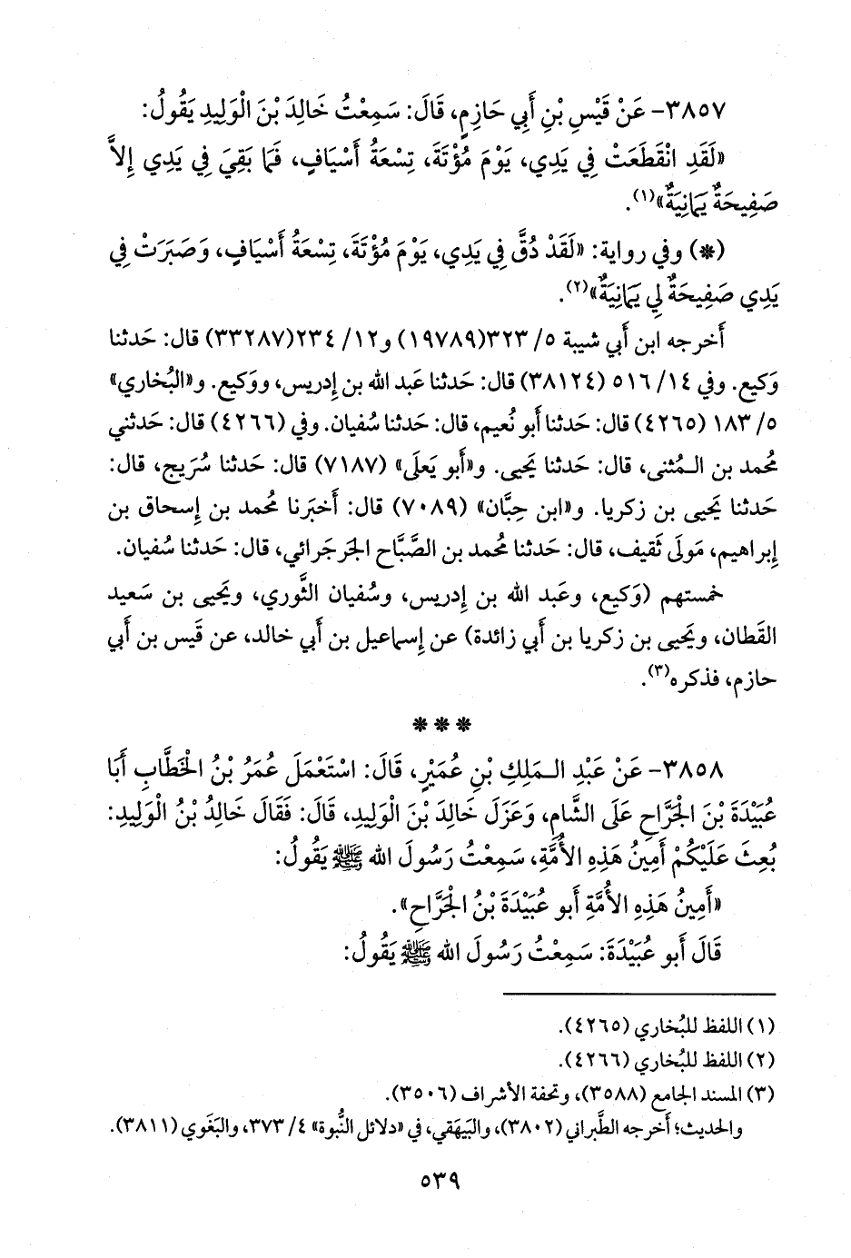 خمستهم (وكيع، وعبد الله بن إدريس، وسفيان الثوري، ويحيى بن سعيد القطان، ويحيى بن زكريا بن أبي زائدة) عن إسماعيل بن أبي خالد، عن قيس بن أبي حازم، فذكره (¬٣).