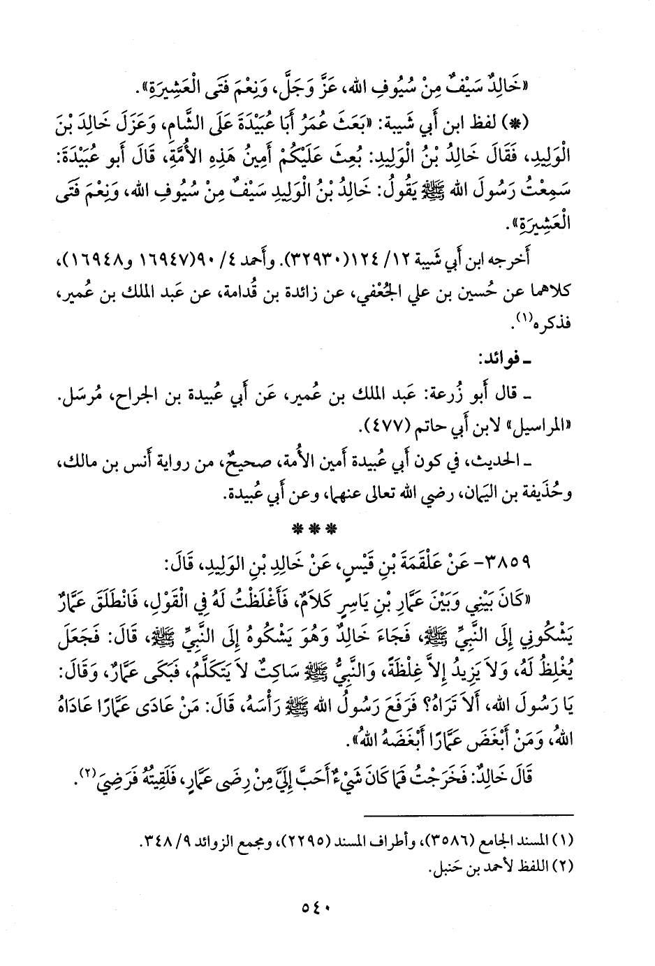 ٣٨٥٩ - عن علقمة بن قيس، عن خالد بن الوليد، قال: