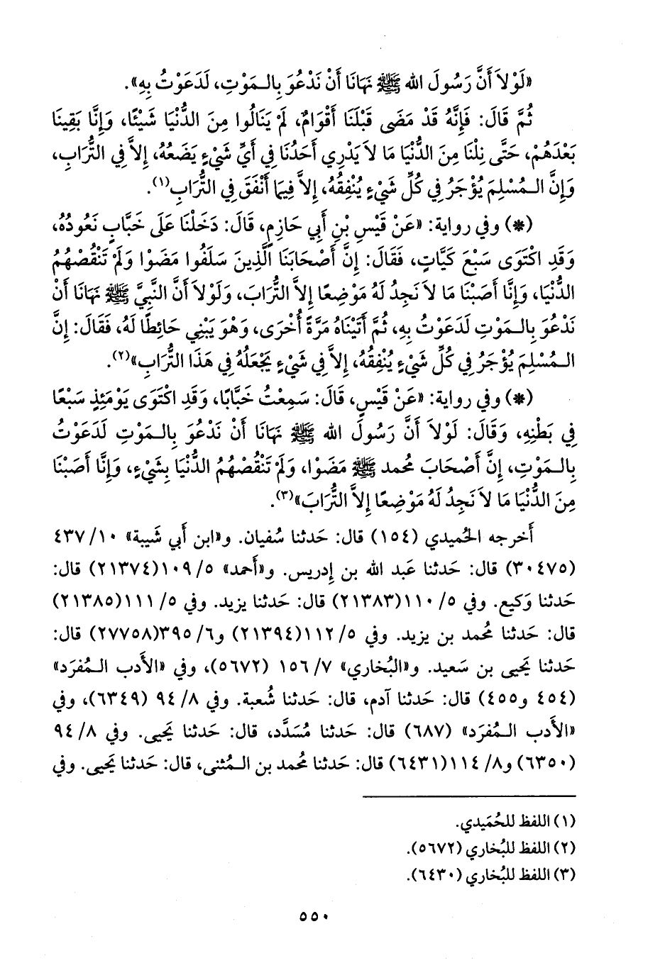 ٨/ ٩١ (٦٤٣٠) قال: حدثني يحيى بن موسى، قال: حدثنا وكيع. وفي ٩/ ٨٤ (٧٢٣٤) قال: حدثنا محمد، قال: حدثنا عبدة. و «مسلم» ٨/ ٦٤ (٦٩١٥) قال: حدثنا أَبو بكر بن أبي شيبة، قال: حدثنا عبد الله بن إدريس. وفي (٦٩١٦) قال: حدثناه إسحاق بن إبراهيم، قال: أخبرنا سفيان بن عُيينة، وجرير بن عبد الحميد، ووكيع (ح) وحدثنا ابن نُمير، قال: حدثنا أبي (ح) وحدثنا عُبيد الله بن معاذ، ويحيى بن حبيب، قالا: حدثنا مُعتَمِر (ح) وحدثنا محمد بن رافع، قال: حدثنا أَبو أُسامة. و «النَّسَائي» ٤/ ٤، وفي «الكبرى» (١٩٦٢) قال: أخبرنا محمد بن بشار، قال: حدثنا يحيى بن سعيد. و «ابن حِبَّان» (٢٩٩٩) قال: أخبرنا أَبو خليفة، قال: حدثنا إبراهيم بن بشار، قال: حدثنا سفيان.