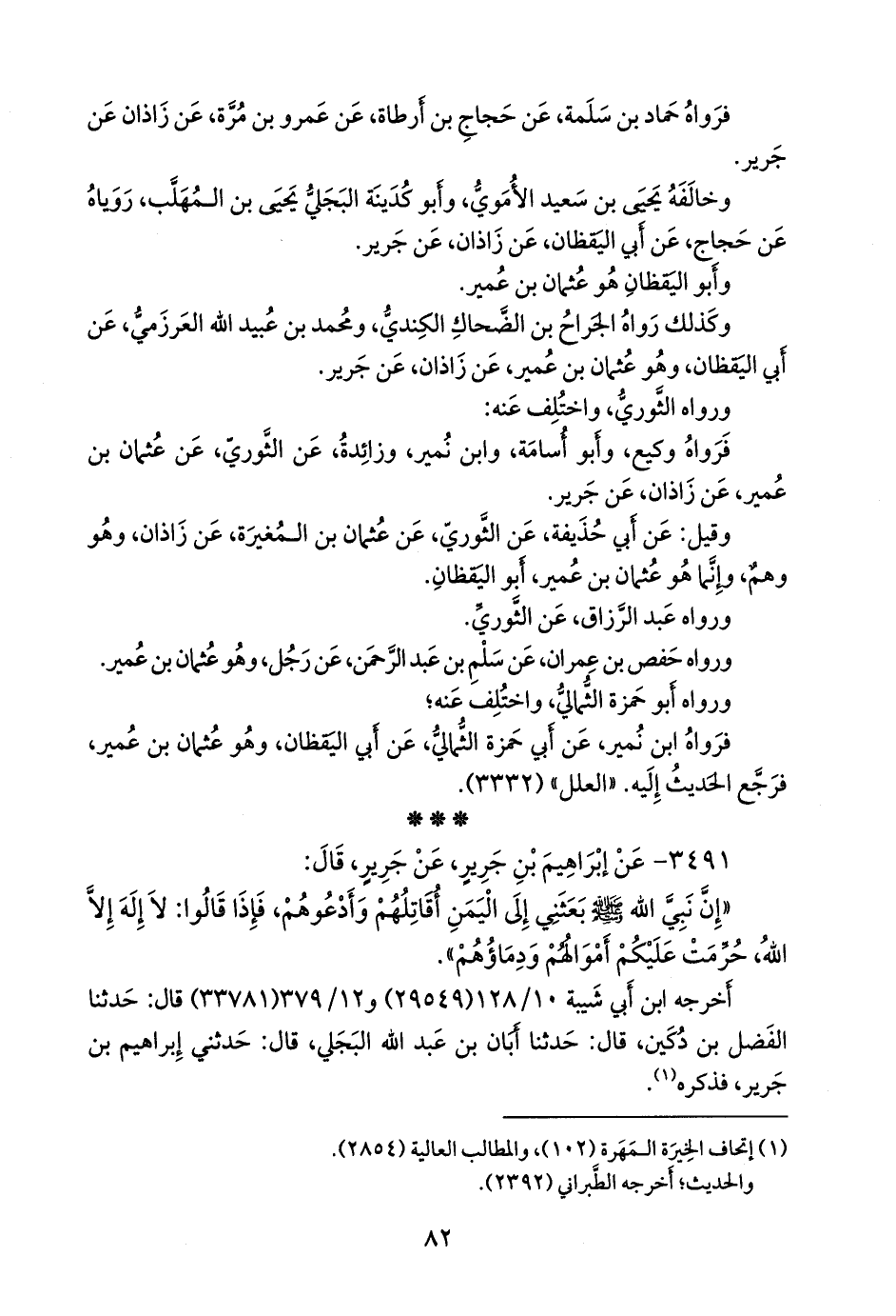٣٤٩١ - عن إبراهيم بن جرير، عن جرير، قال: