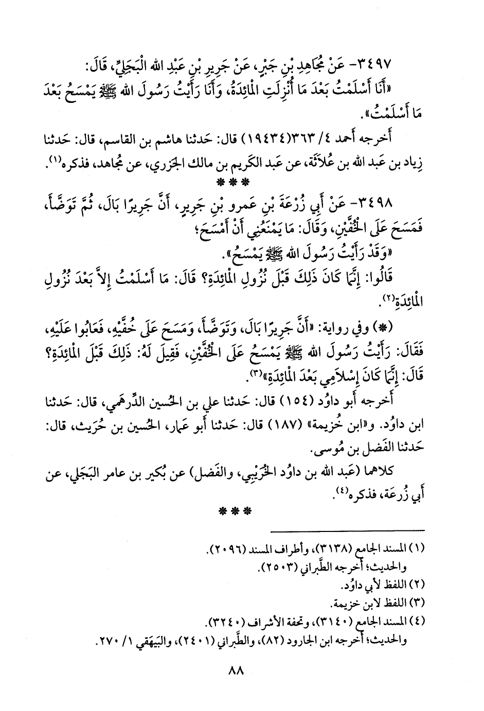 ٣٤٩٨ - عن أَبي زُرعَة بن عَمرو بن جرير، أن جريرا بال، ثم توضأ، فمسح على الخفين، وقال: ما يمنعني أن أمسح؛