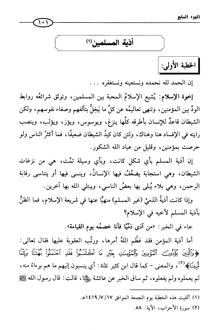 (¬2) سورة الأحزاب، الآية: 58.