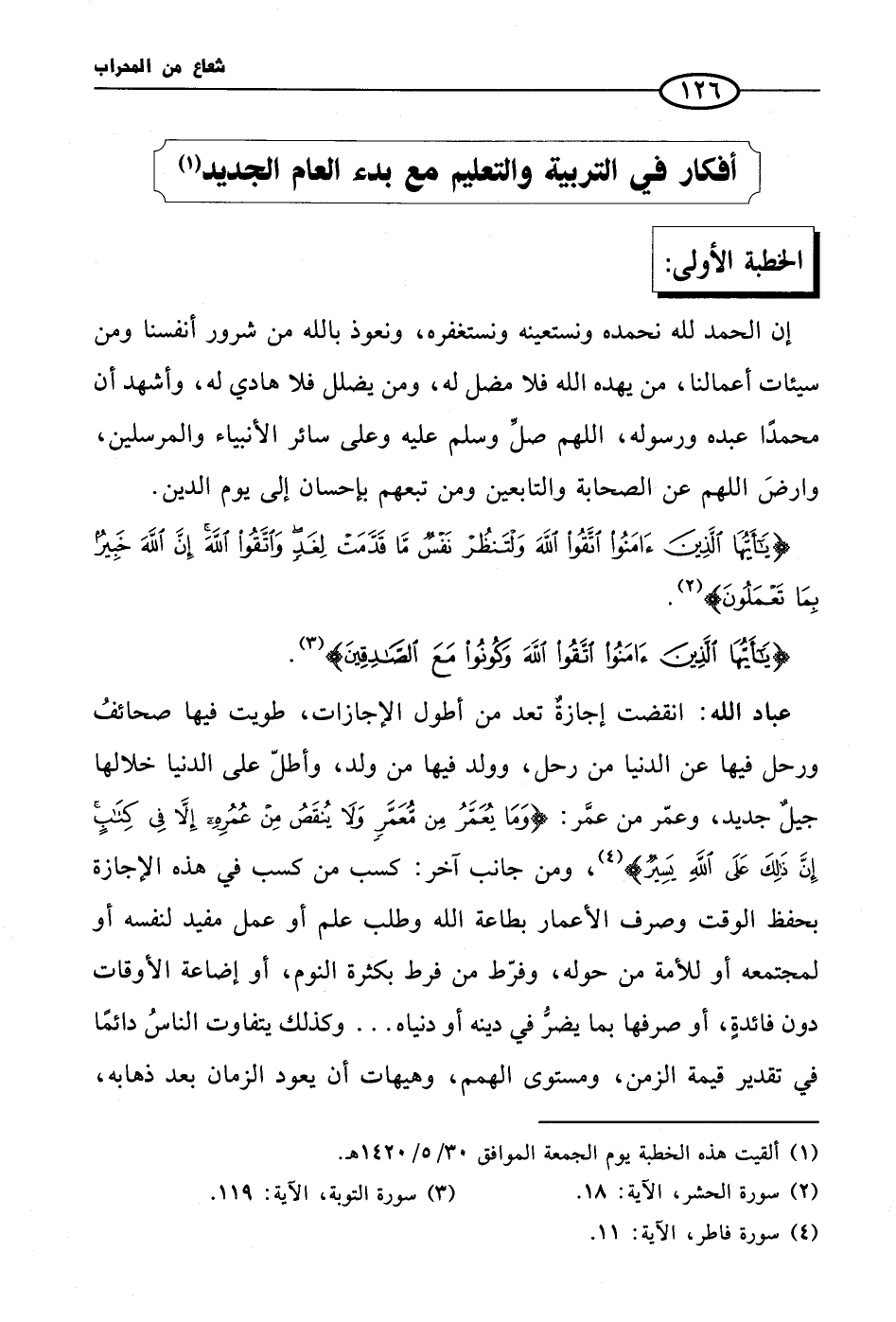 (¬1) ألقيت هذه الخطبة يوم الجمعة الموافق 30/ 5/ 1420 هـ.