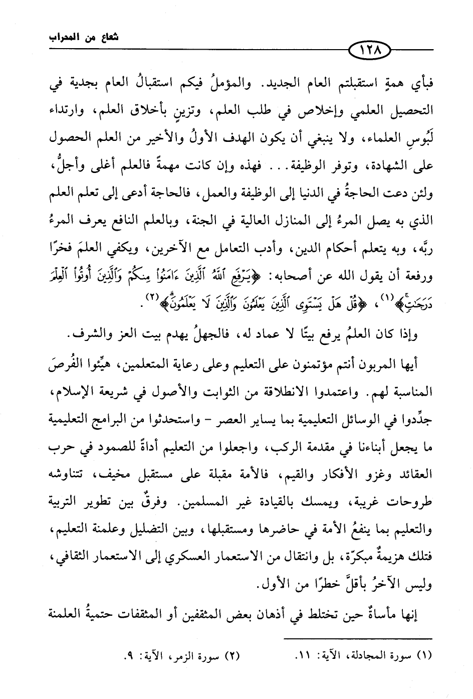 (¬2) سورة الزمر، الآية: 9.