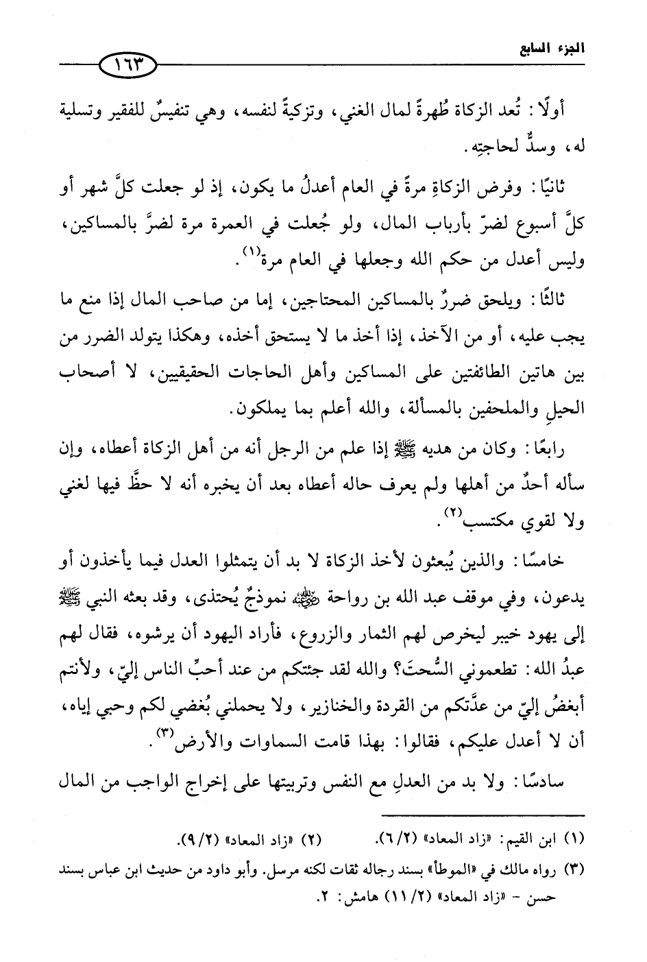 خامسًا: والذين يُبعثون لأخذ الزكاة لا بد أن يتمثلوا العدل فيما يأخذون أو يدعون، وفي موقف عبد الله بن رواحة رضي الله عنه نموذجٌ يُحتذى، وقد بعثه النبي صلى الله عليه وسلم إلى يهود خيبر ليخرص لهم الثمار والزروع، فأراد اليهود أن يرشوه، فقال لهم عبدُ الله: تطعموني السُّحتَ؟ والله لقد جئتكم من عند أحبِّ الناس إليّ، ولأنتم أبغضُ إليّ من عدَّتكم من القردة والخنازير، ولا يحملني بُغضي لكم وحبي إياه، أن لا أعدل عليكم، فقالوا: بهذا قامت السماوات والأرض (¬3).