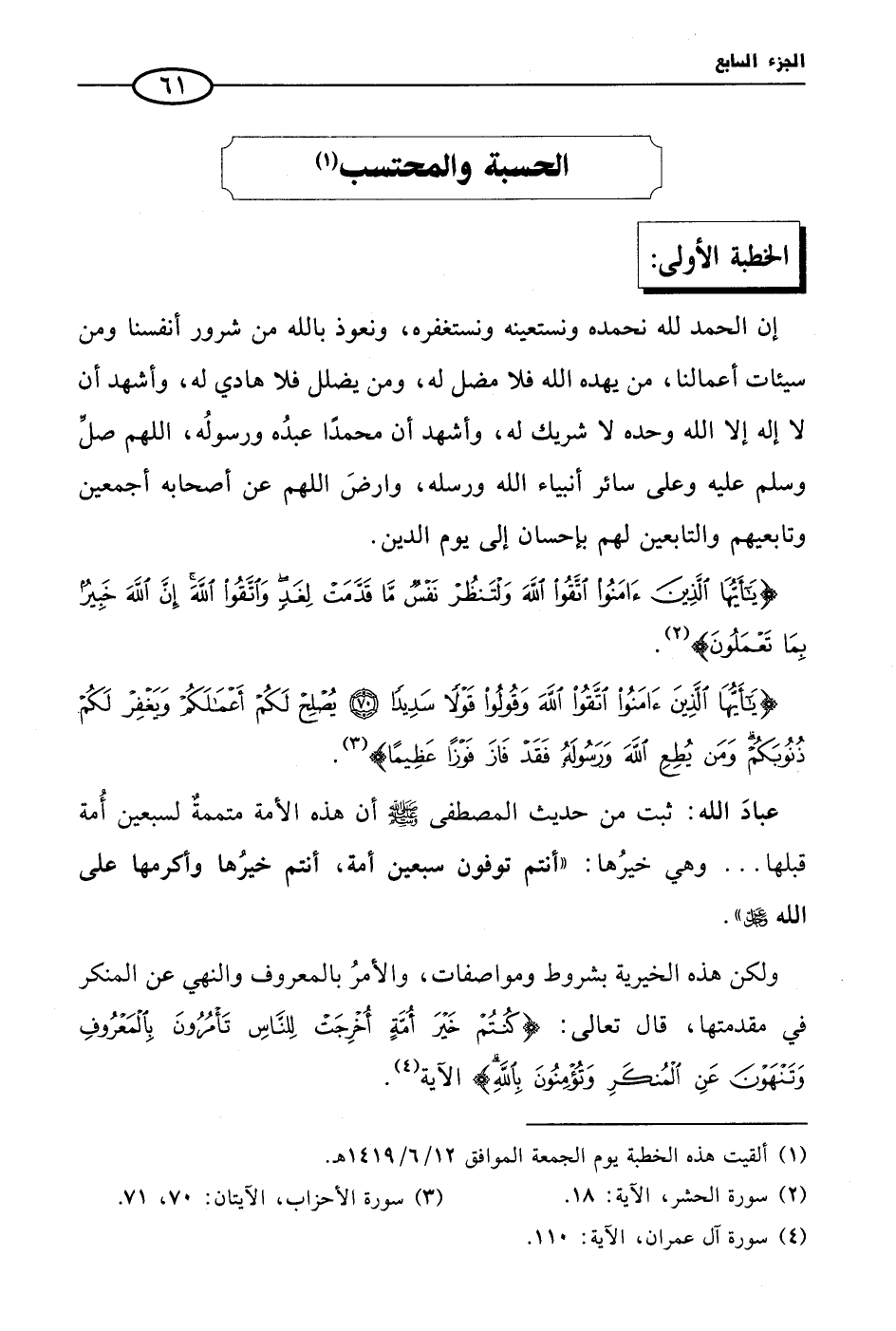 (¬1) ألقيت هذه الخطبة يوم الجمعة الموافق 12/ 6/ 1419 هـ.