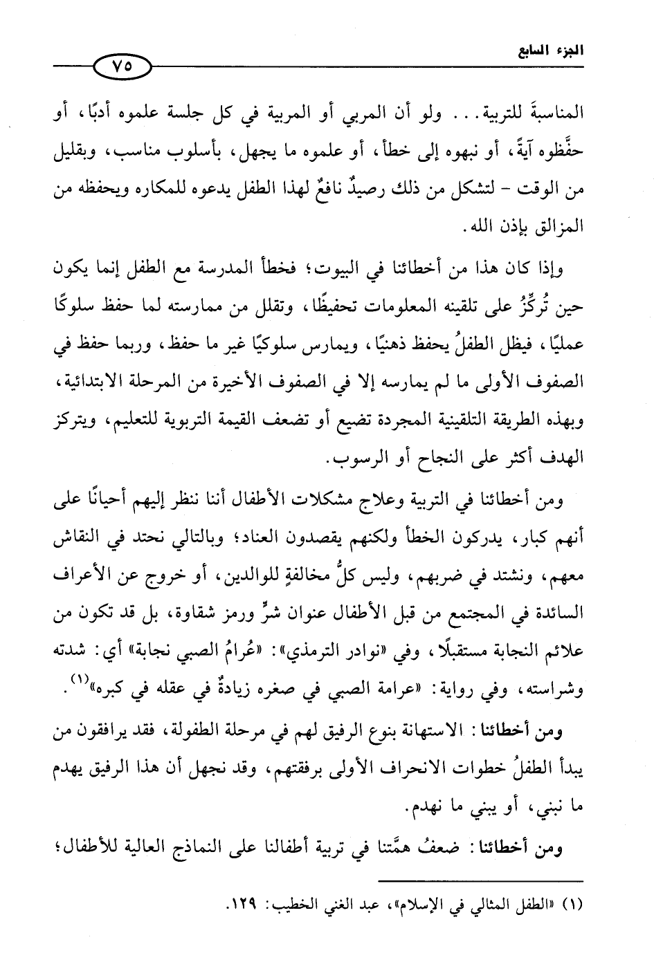(¬1) الطفل المثالي في الإسلام، عبد الغني الخطيب: 129.